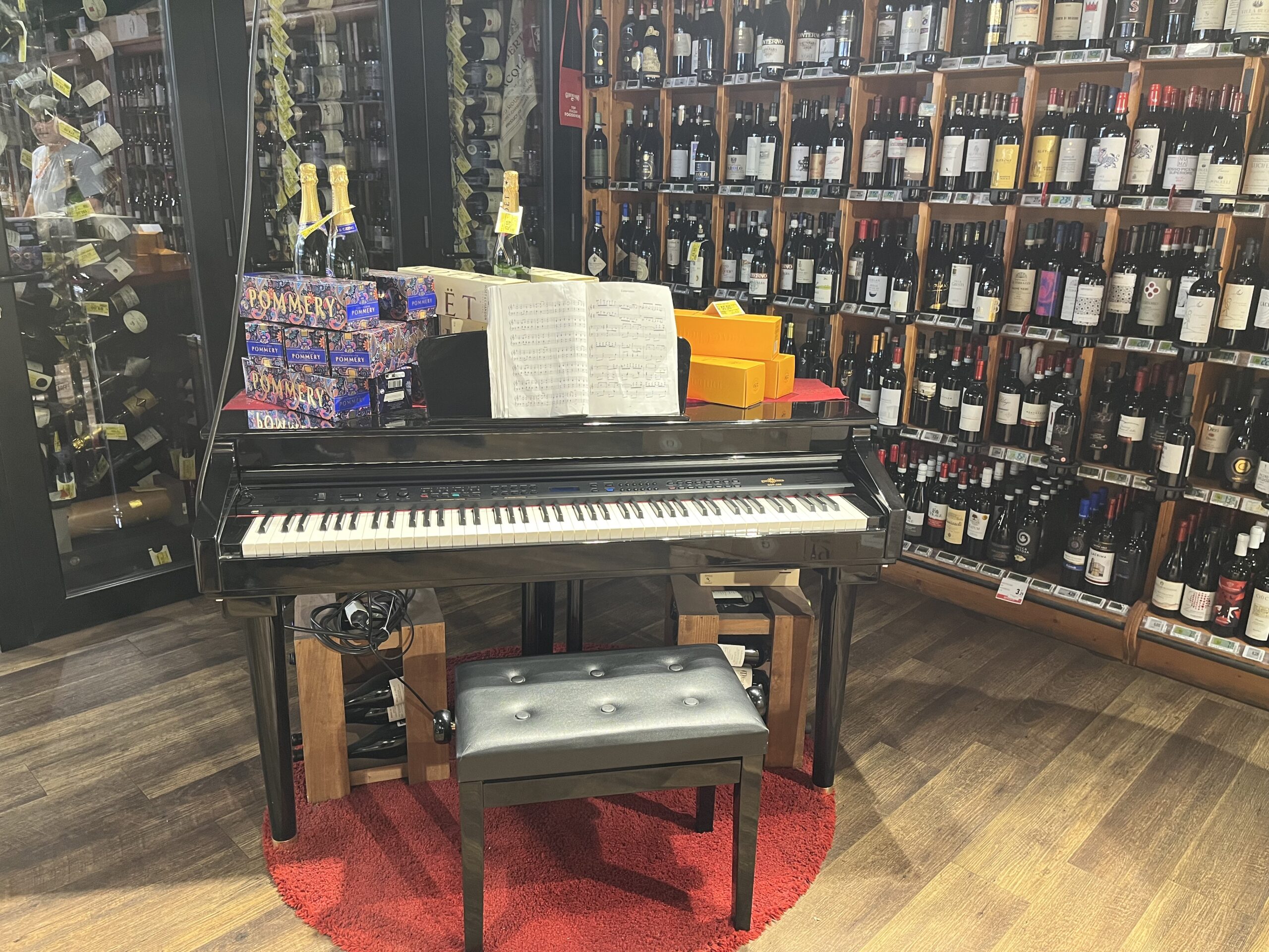 e guarda caso, anche nell’enoteca del supermercato Conad di Porto San Giorgio, di Franco Onori è installato un pianoforte (nero) per i meet-up con i clienti, che li apprezzano molto.