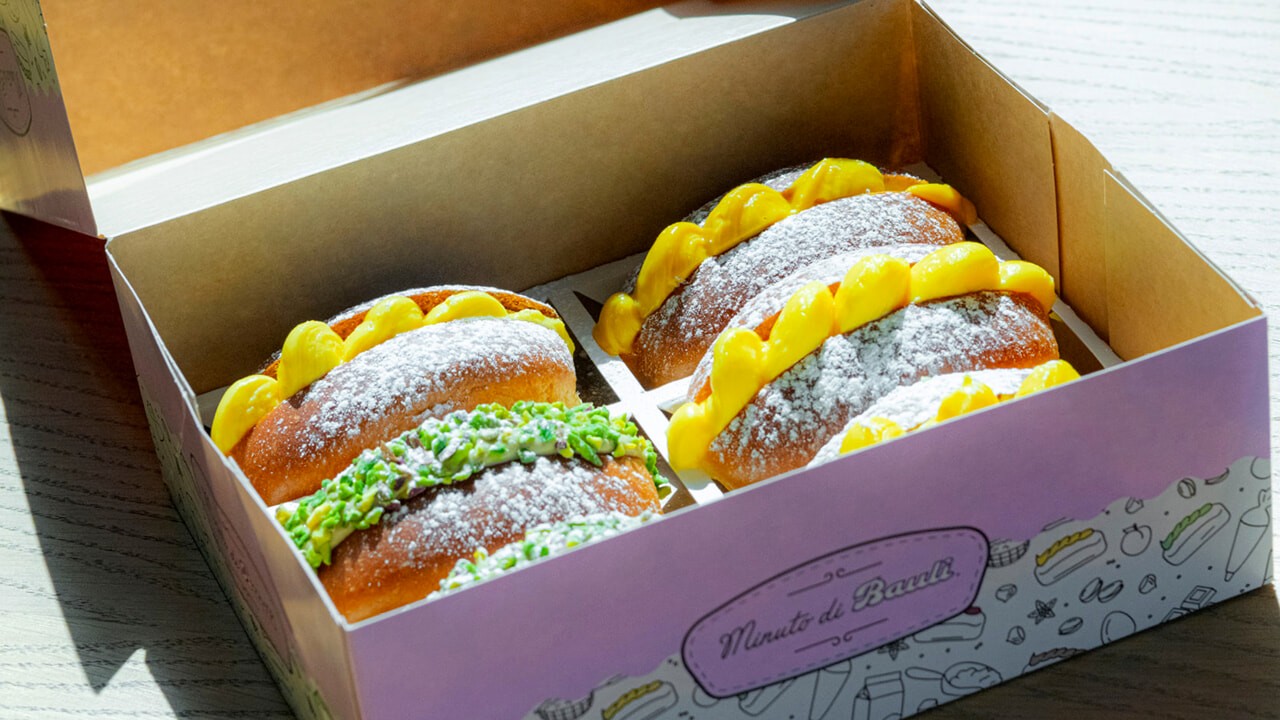 Nel centro nevralgico del nuovo negozio Minuto Bauli, i clienti possono vivere l’emozione di assistere in diretta alla magia della lievitazione e cottura dei prodotti Minuti, ovvero un monoprodotto al profumo di pandoro, quello che cambia sono le varie farciture, fatte a vista dopo la scelta e la richiesta del cliente.