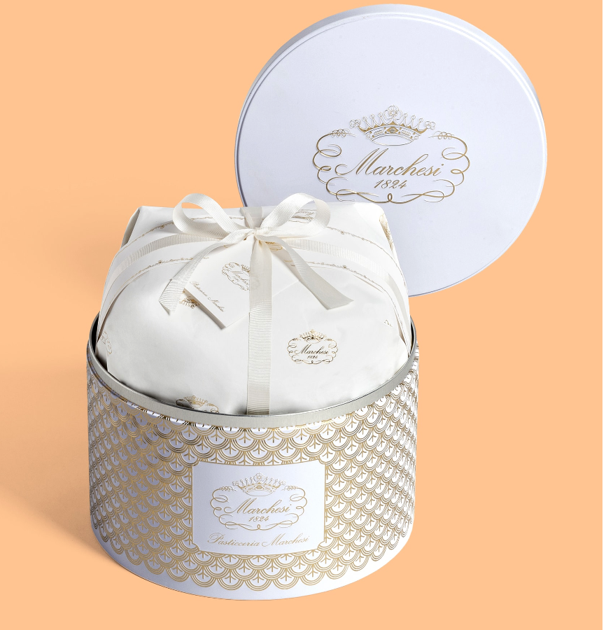 Prossima tappa: Marchesi 1824. Le date nell’alta pasticceria milanese contano molto. La confezione da 1kg costa 60,00 euro e viene racchiusa in una elegante scatola in latta con evanescenti decori in tema con la ricorrenza natalizia. Gli ingredienti sono pregiati come l’uvetta a sei corone, la vaniglia Bourbon del Madagascar, miele italiano, uova di galline ruspanti a terra.
