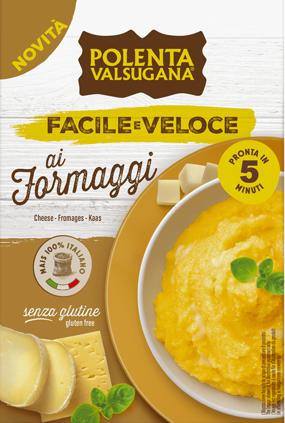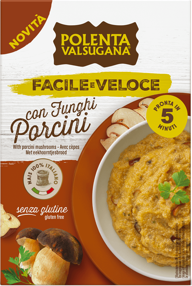 Polenta Valsugana rapida presenta 3 gusti: “ai formaggi“, “ai funghi porcini” e “al ragù“. In sintesi, è una versione pronta e veloce del piatto tradizionale italiano. Interamente gluten-free è costituita da mais 100% italiano. La preparazione del prodotto è molto rapida. Occorre versare 350 ml di acqua in una pentola e portarla ad ebollizione. Successivamente bisogna versare il contenuto della confezione e mescolare con un cucchiaio di legno. L’ultima fase richiede una cottura a fuoco basso per circa 5 minuti mescolando frequentemente.