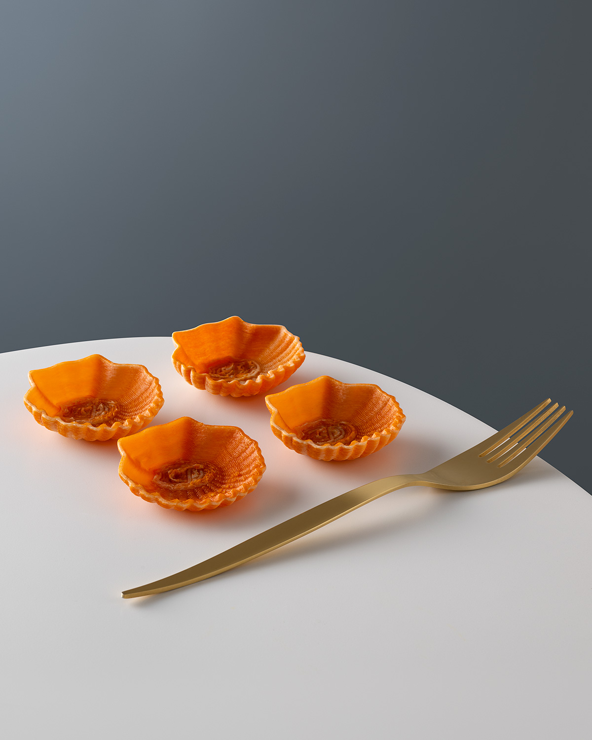 Tuttavia, l’esempio più impressionante è offerto dal ristorante gran classe di Tokyo Sushi Singularity che ha reinventato il sushi proponendolo con nuove, spettacolari estetiche e geometrie grazie alla stampa in 3D. Partendo dalla carne di tonno coltivato gli chef ottengono un cubo filigranato e polpo scolpito in un reticolo a nido d’ape, non senza colori spettacolari.