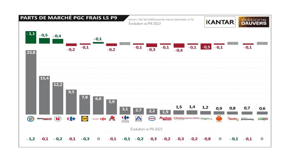 Oltre a Leclerc, sono tutti gli indipendenti a trionfare. + 0,5 punti per Intermarché, + 0,4 punti per U. In totale, 2 punti di PDM (quota di mercato) guadagnati. Con 1,4 miliardi di euro per ogni punto (del tasso annuo), la tendenza fa male a tutti gli altri. “Tutti, nessuno escluso, sono in rosso – conclude  Dauvers –  Carrefour, Auchan, Casino, Cora e perfino Aldi e Lidl che non beneficiano dell’inflazione. E non c’è nulla che faccia pensare ad un’inversione di tendenza nel breve periodo.”
