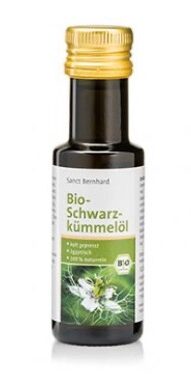 Un altro prodotto di Kräuterhaus Sanct-Bernhard interessante dal punto di vista nutrizionale è l’olio ottenuto con spremitura a freddo dai semi della nigella sativa, ossia il cumino nero coltivato in Egitto e garantito bio. Oltre al particolare colore sui toni del verde scuro, l’olio di cumino rilascia il caratteristico aroma di questa spezia, conferendo all’olio una punta di piccante. L’alto contenuto di acidi grassi polinsaturi è utile per mantenere sotto controllo i livelli di colesterolo.