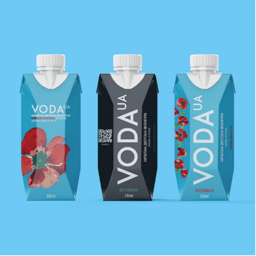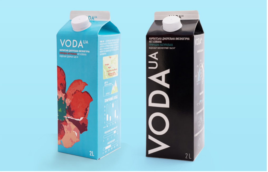 il cliente finale. Per il packaging VODA UA ha scelto una gamma di contenitori in diversi materiali per soddisfare tutte le necessità: bottiglia in vetro dalla forma elegante disegnata per ingentilire le tavole dei ristoranti, in PET leggero, in multistrato nel formato adatto a un facile consumo on-the-go da 33cl e nel formato famiglia da 2lt.